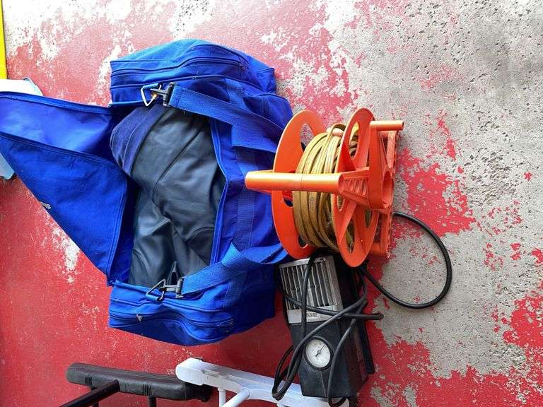LOT 109 - Lot includes compressor, extension cord, and what appears to be a pump up air mattress