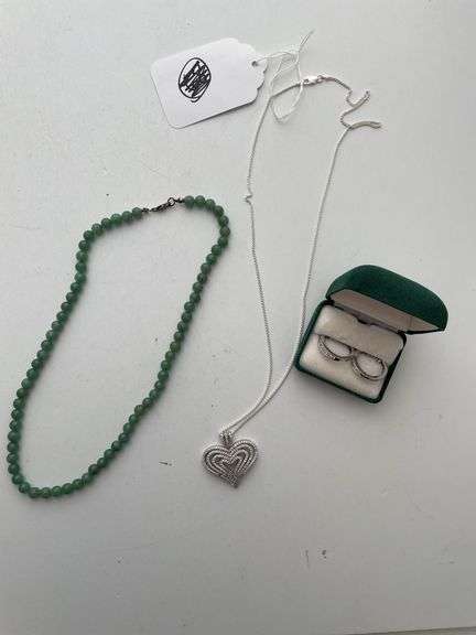 LOT 84 - Jewelry lot. Includes pearls. Earrings. Necklace with heart pendant. Pendant tested positive for diamonds.