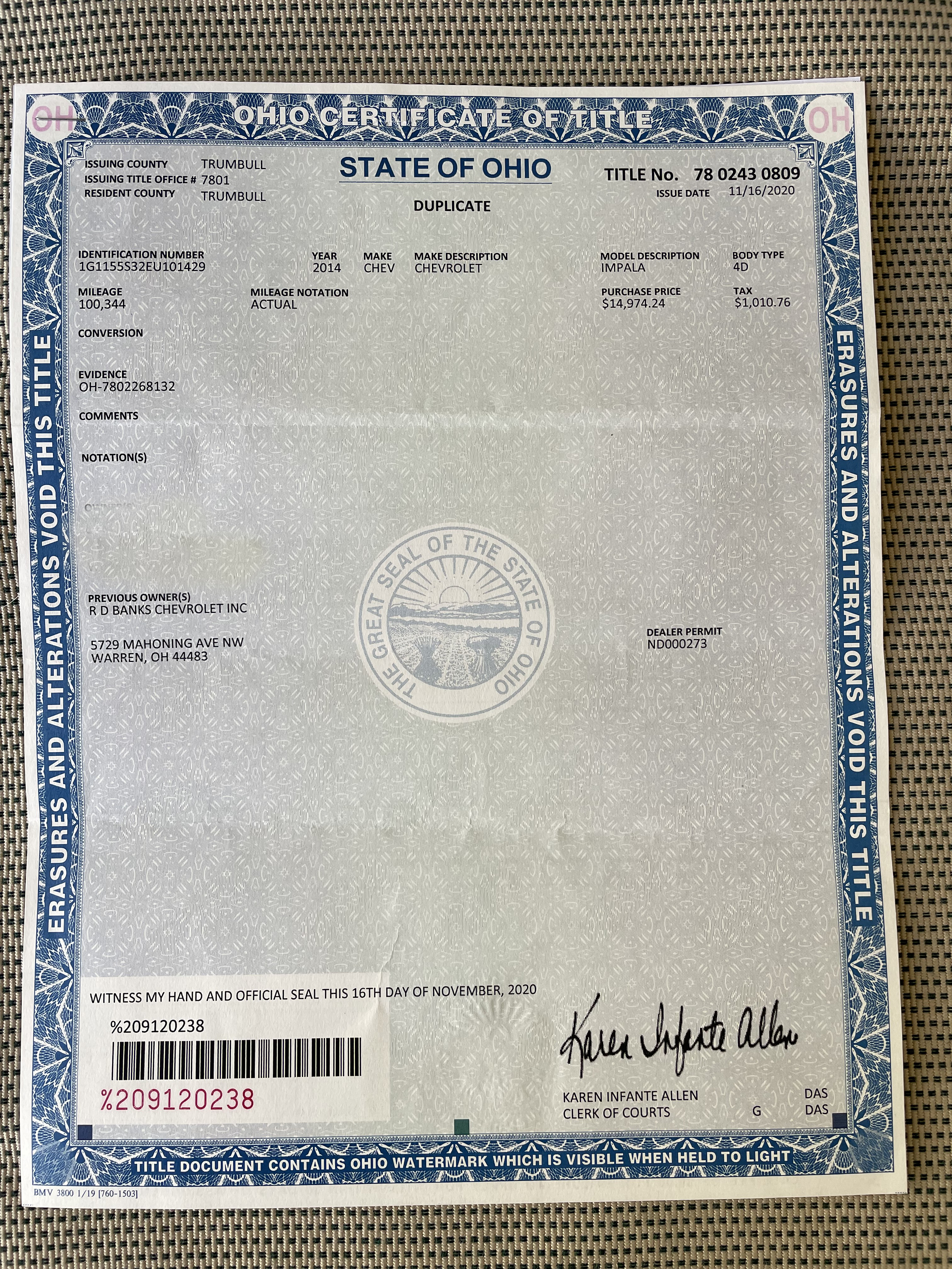 Online Vehicle & Contents Auction: 2014 Chevy Impala LTZ 120,631 Miles, 2011 Cadillac CTS Luxury 27,203 Miles - 13% Buyer's Fee